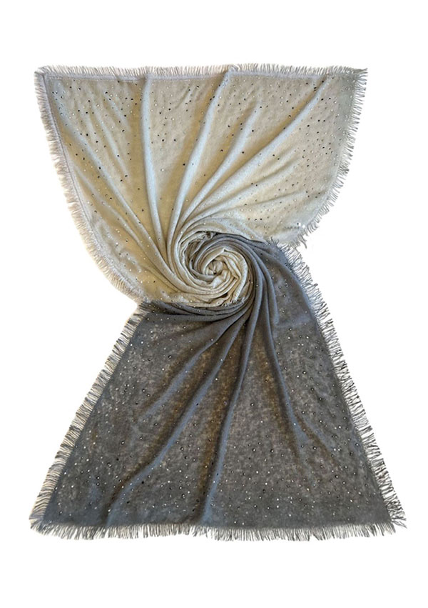Ash White Ombre Cashmere Pearl and Crystal Shawl