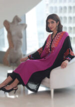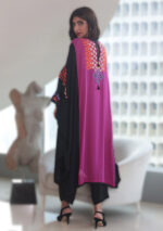 The pink and black long multicoloured kaftan is made of pure georgette, paired with black pants.