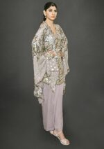The georgette mauve outfit is a 2 piece paired with chiffon pants.