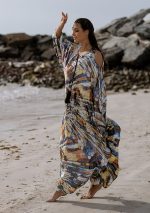 Multicolor Abstract Print Silk Kaftan